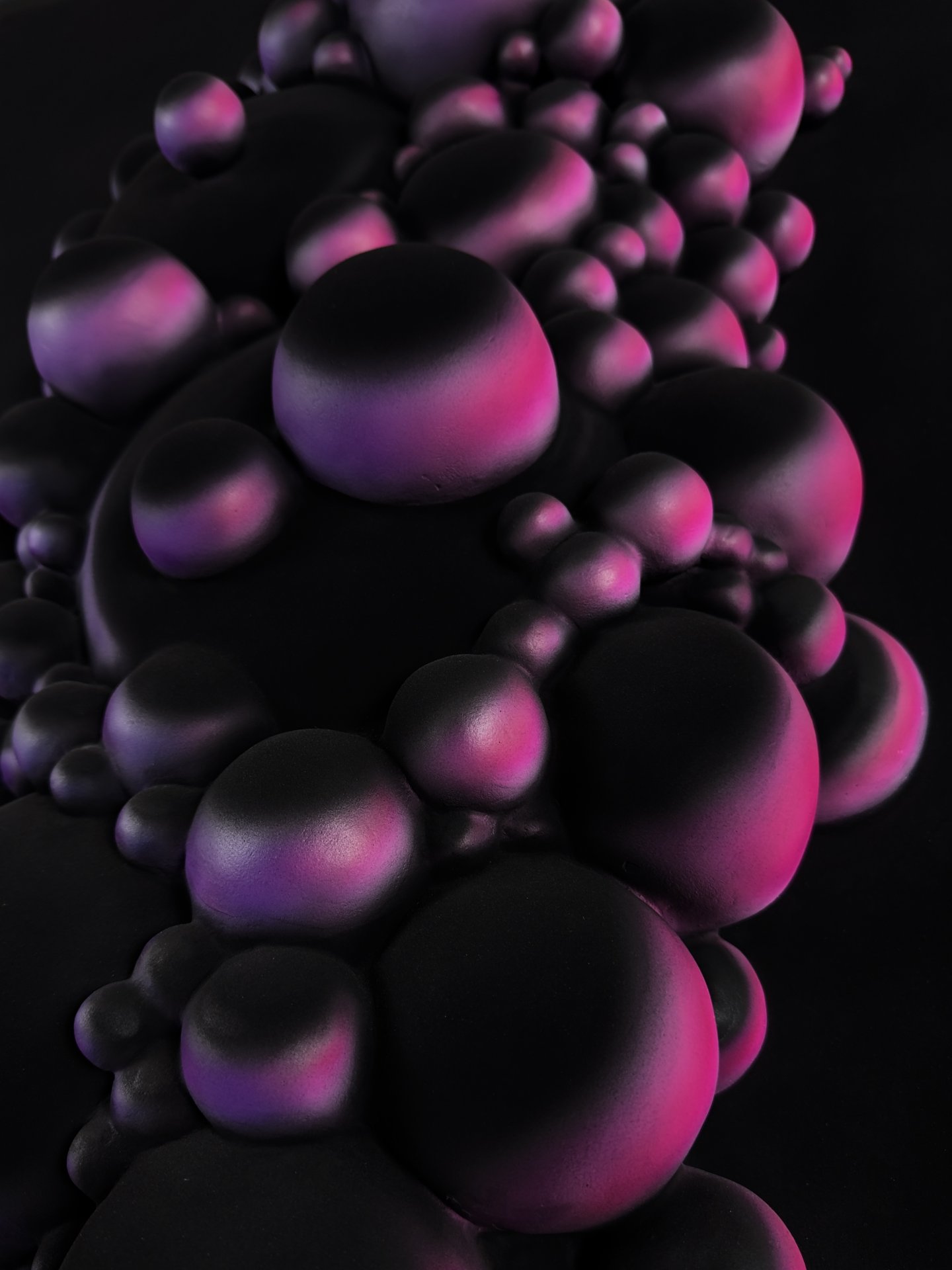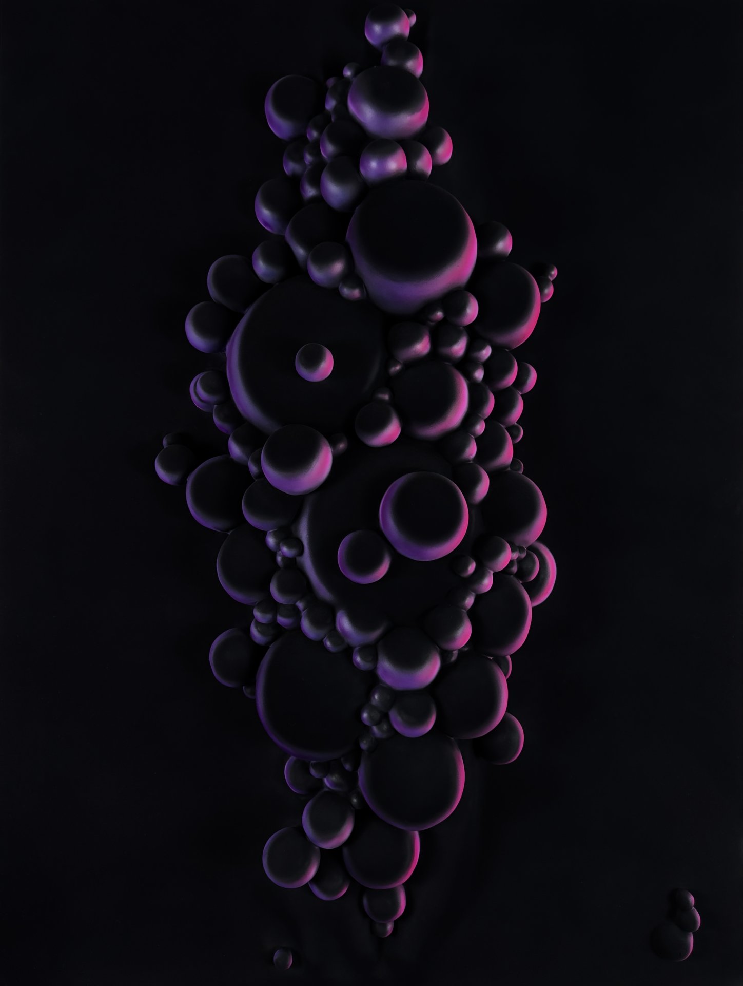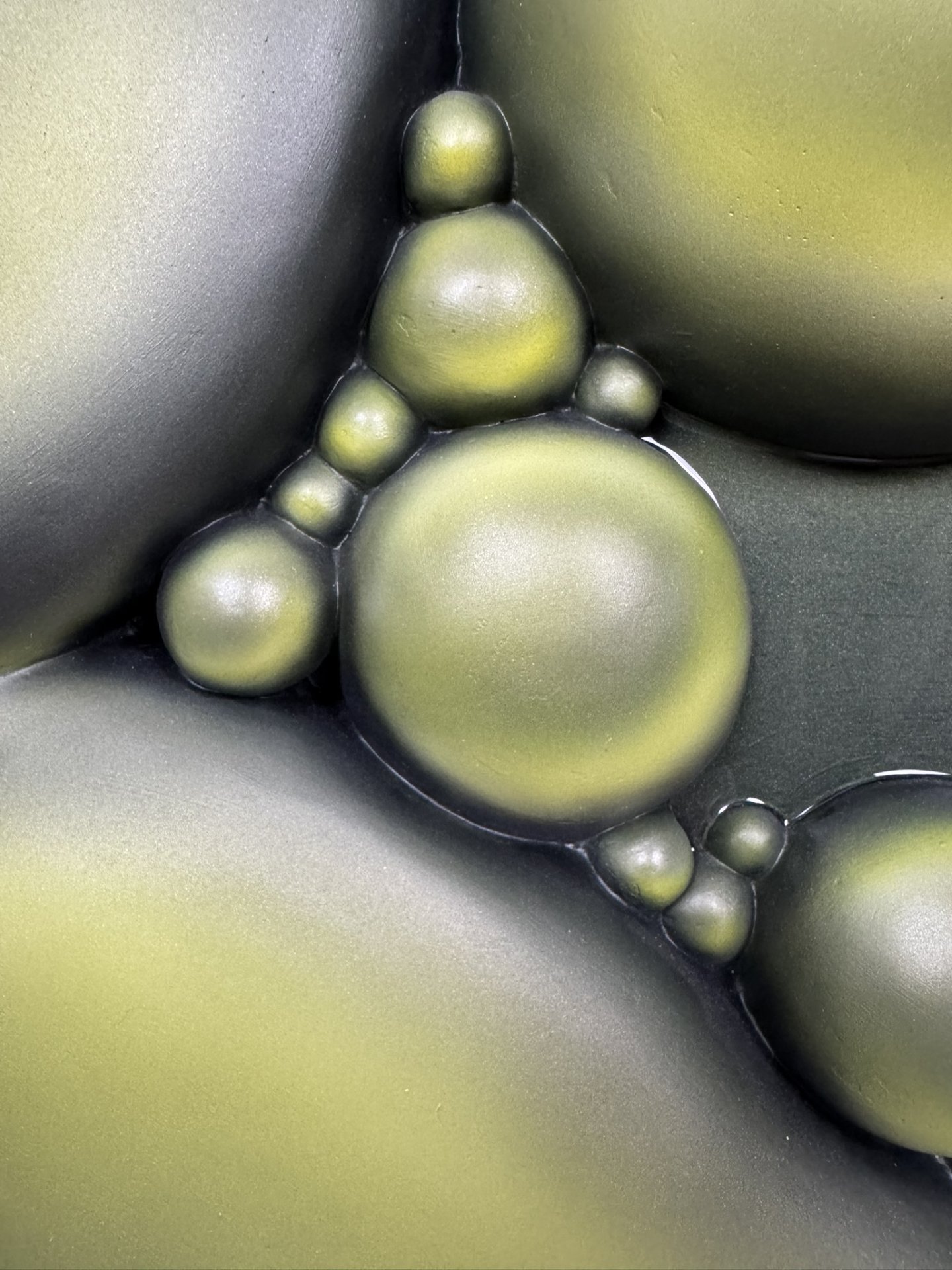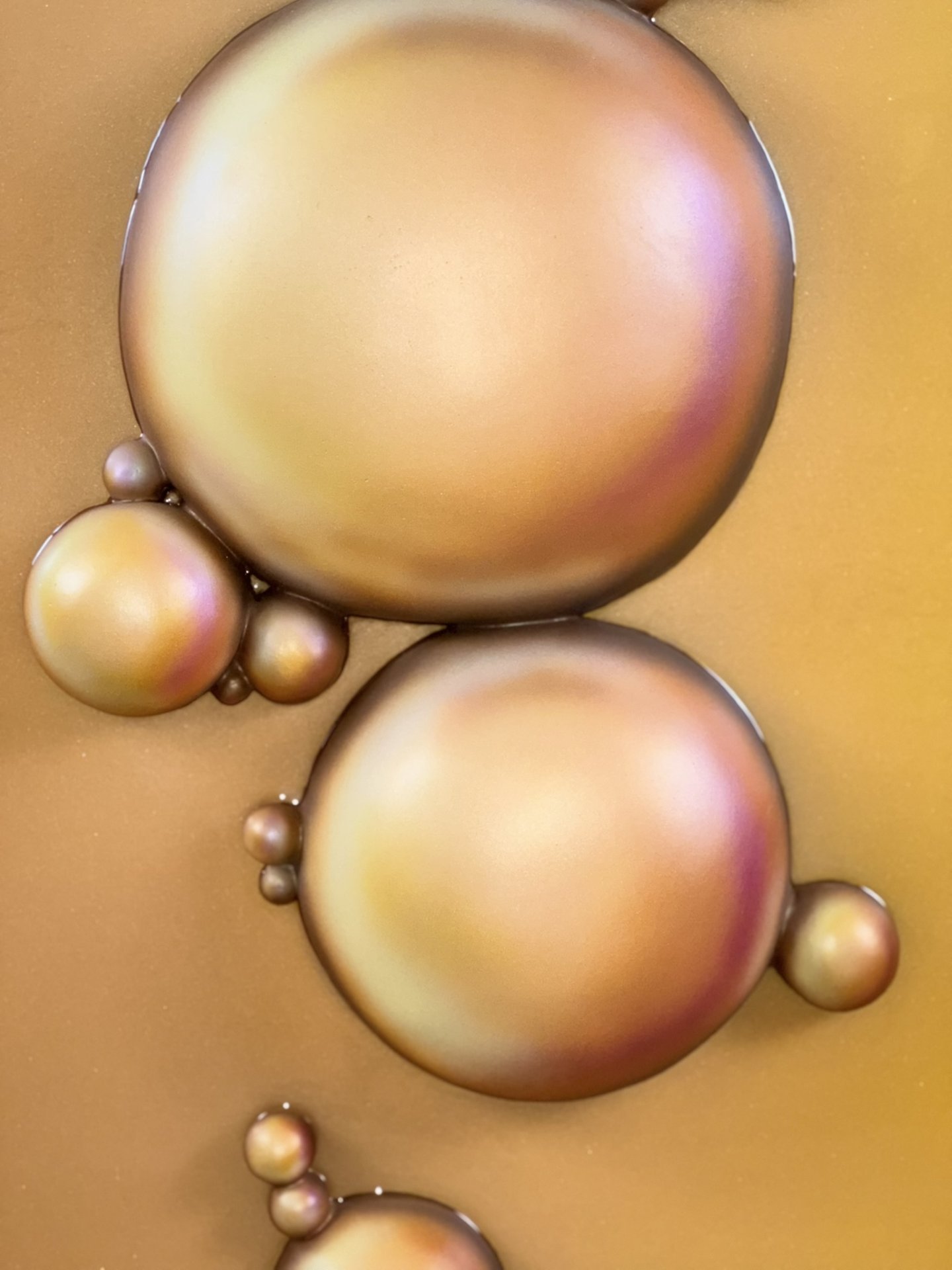 The artwork has an organic, fluid quality with soft, rounded forms that seem to emerge and merge together. It’s reflecting both the smooth sculptural flow and the clustered, bubble-like formations that evoke natural processes of change and growth.