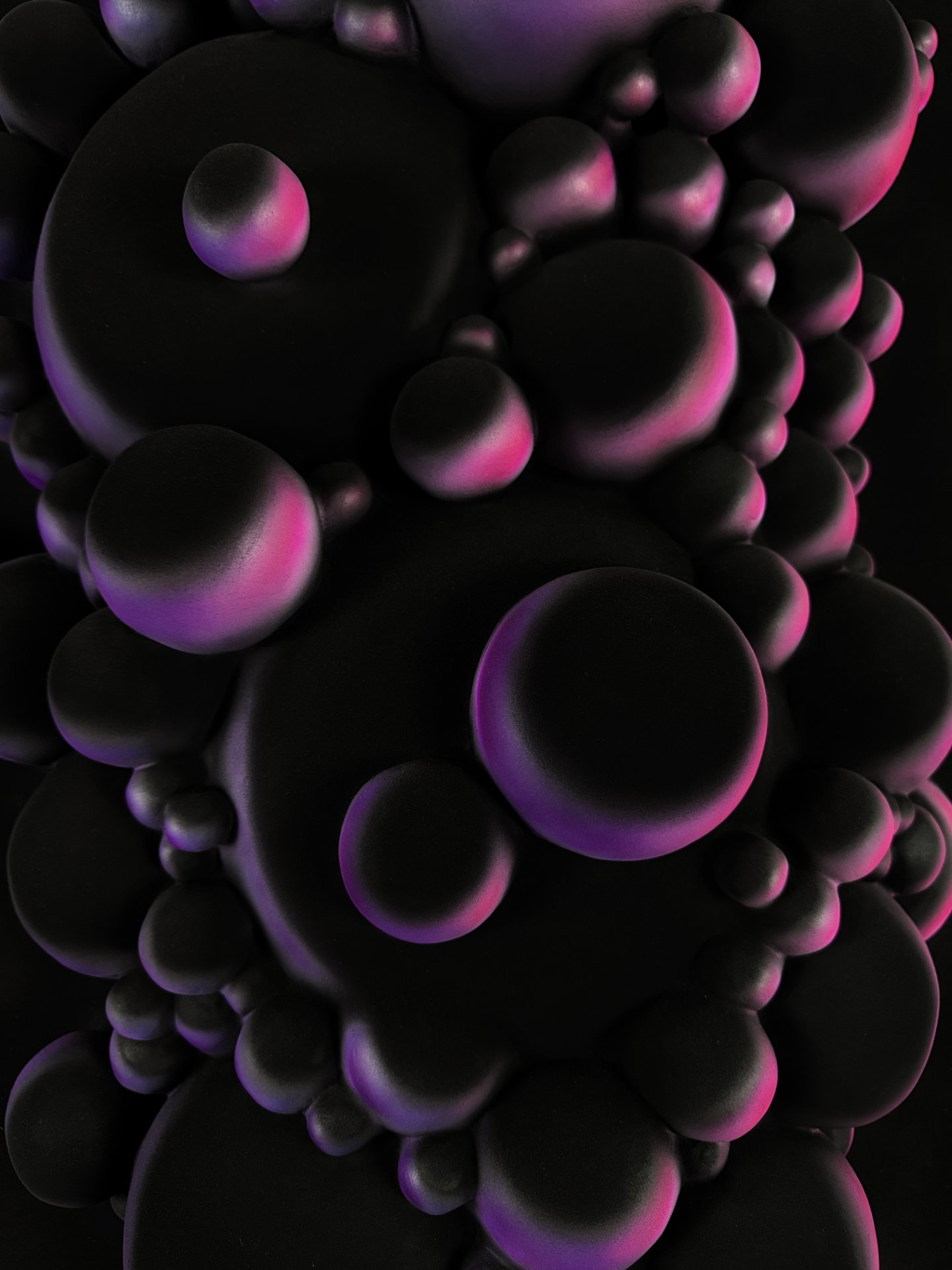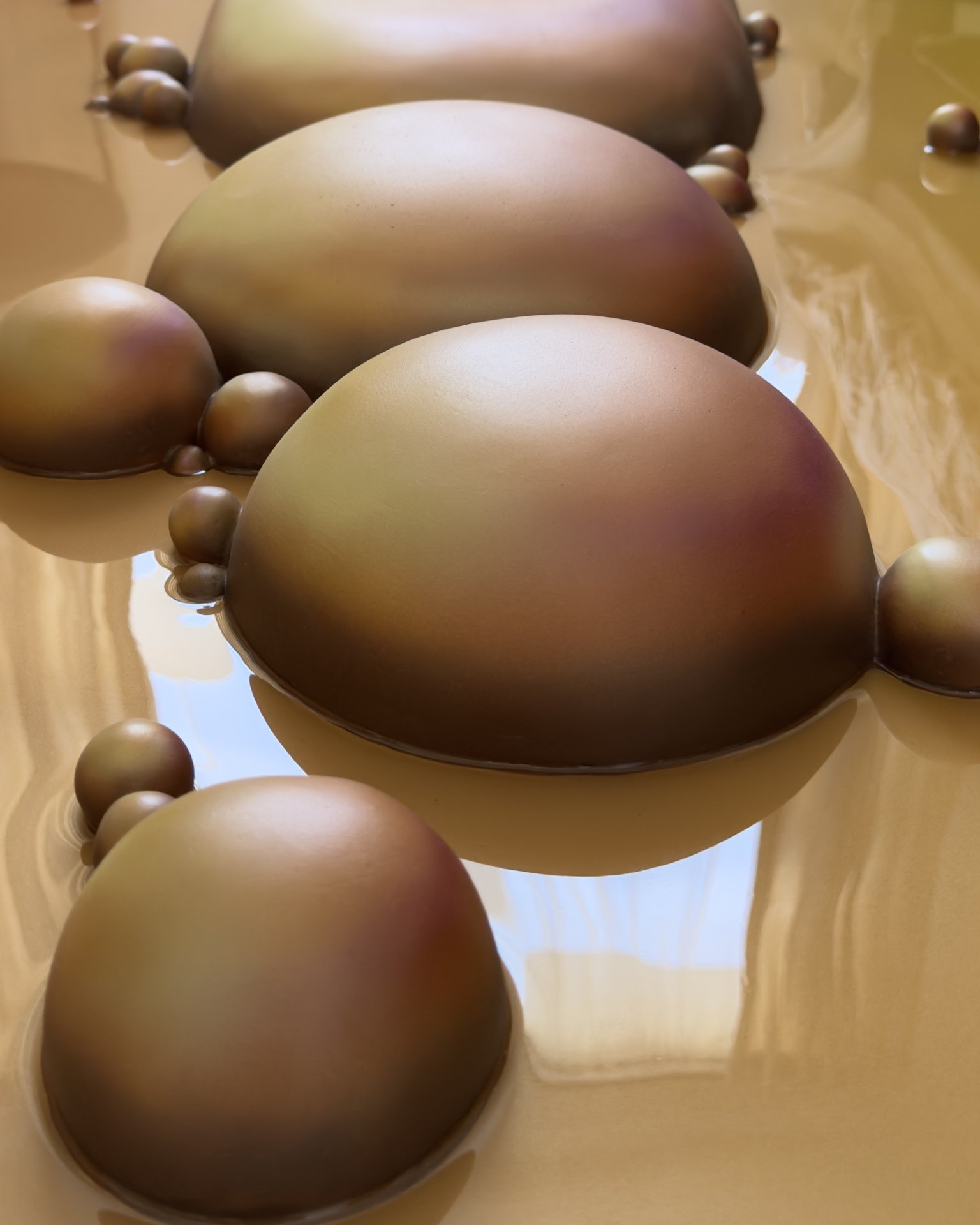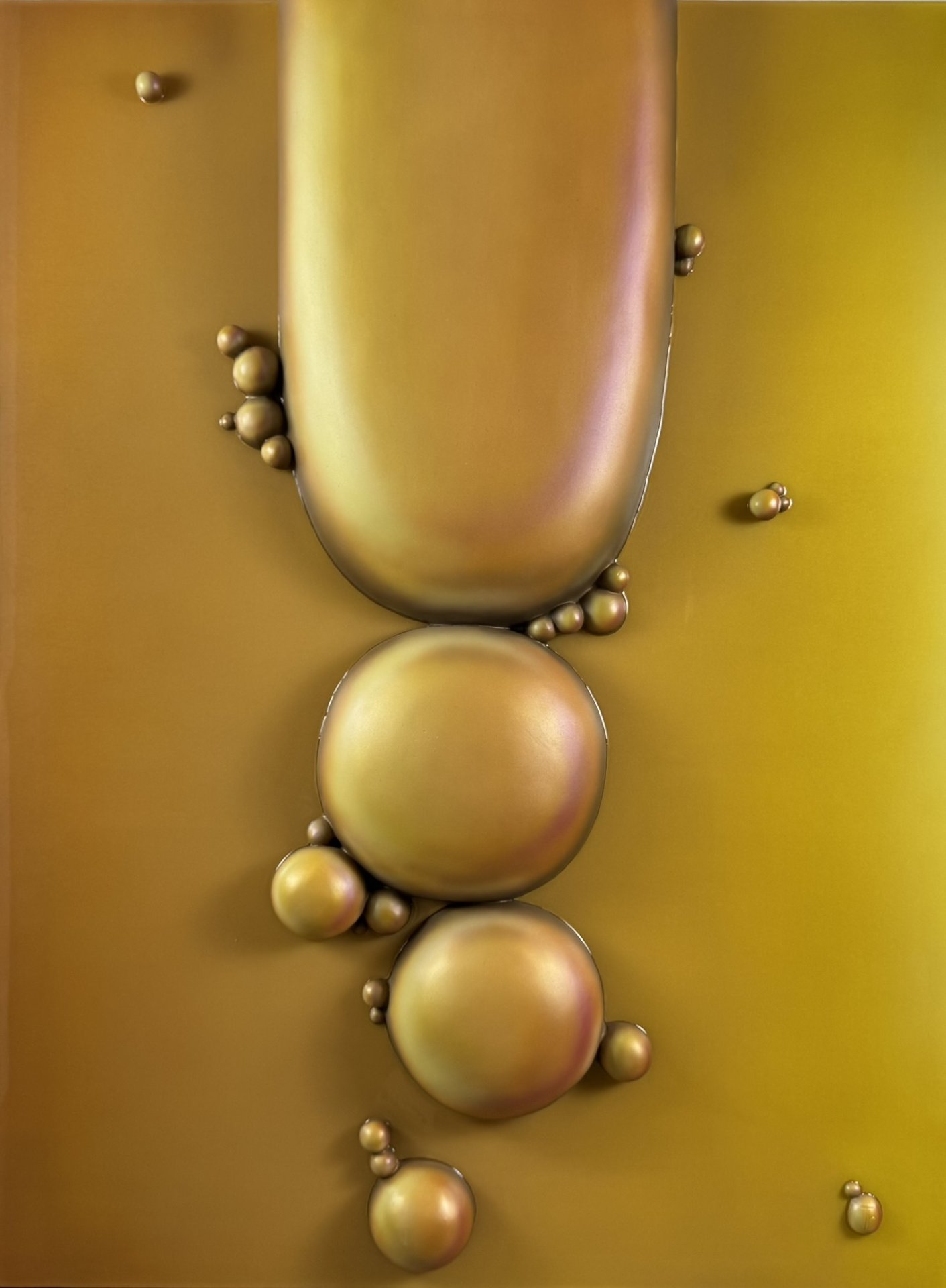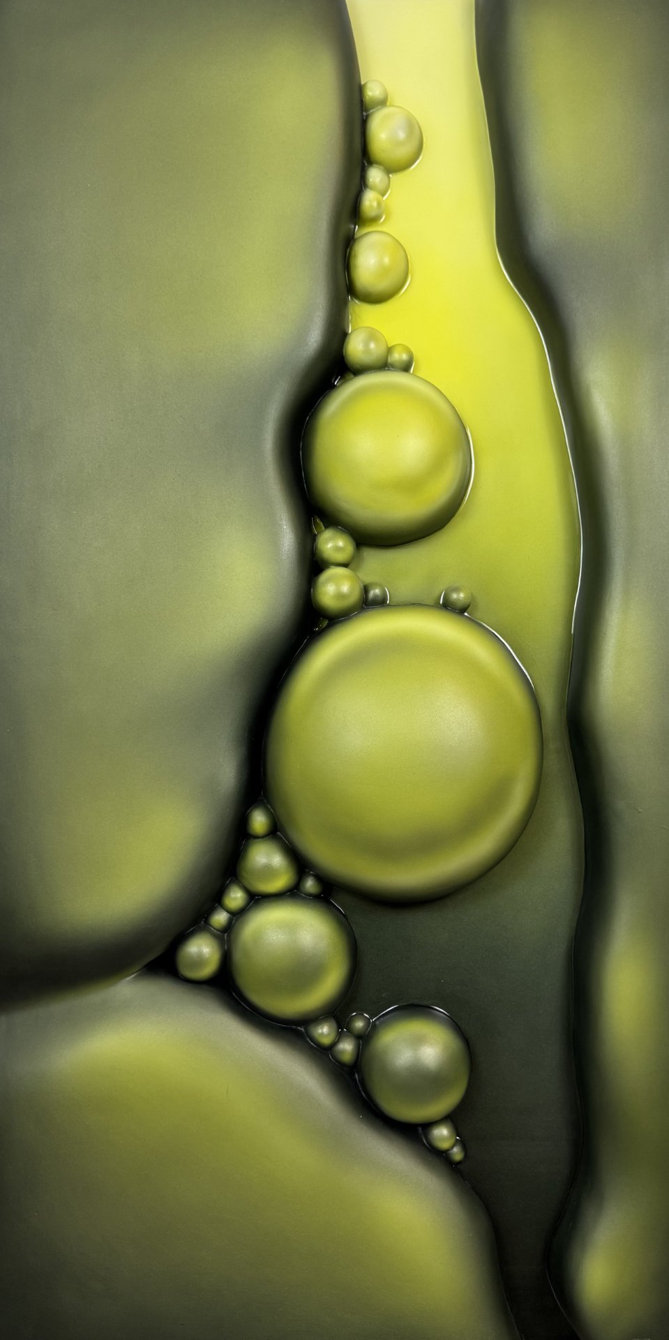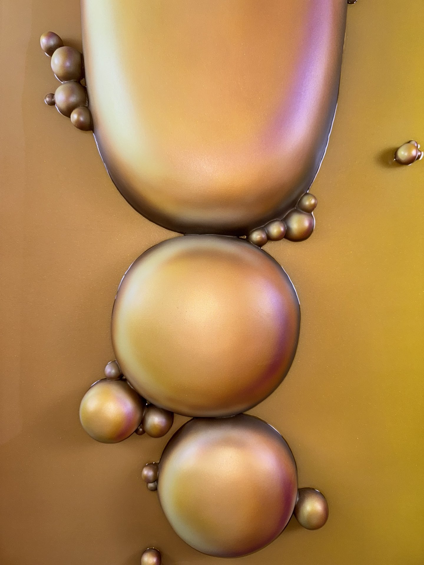 The artwork has an organic, fluid quality with soft, rounded forms that seem to emerge and merge together. It’s reflecting both the smooth sculptural flow and the clustered, bubble-like formations that evoke natural processes of change and growth.