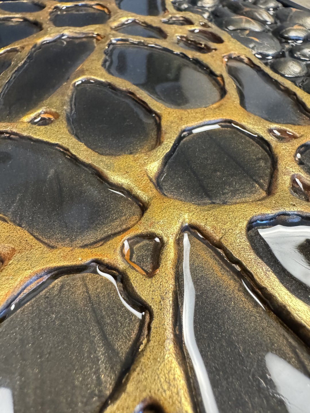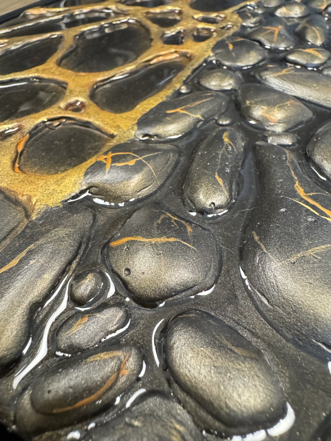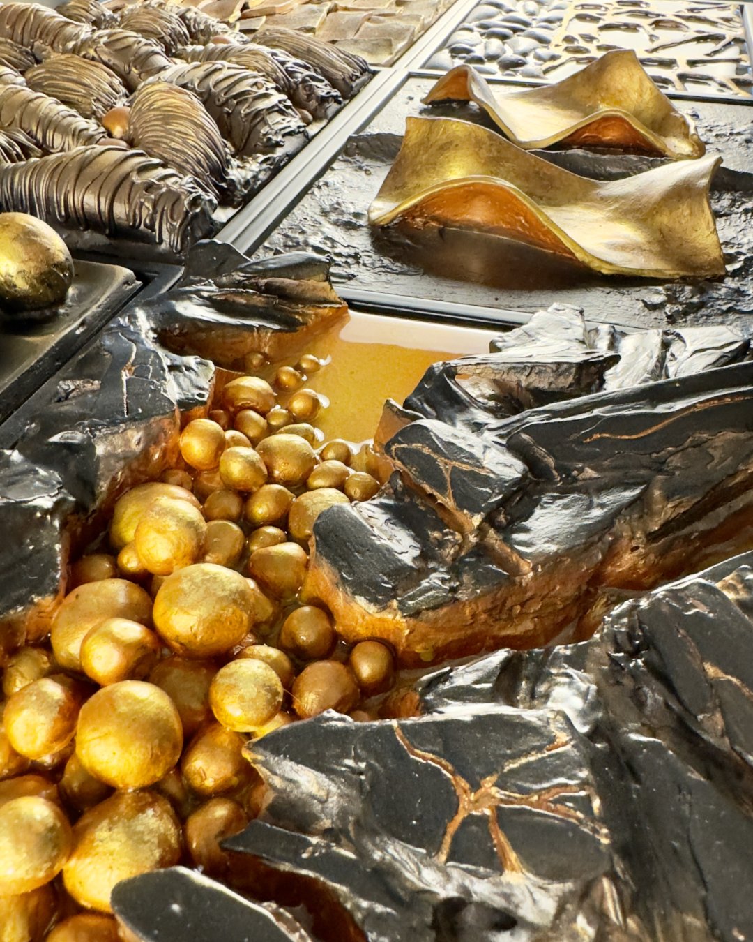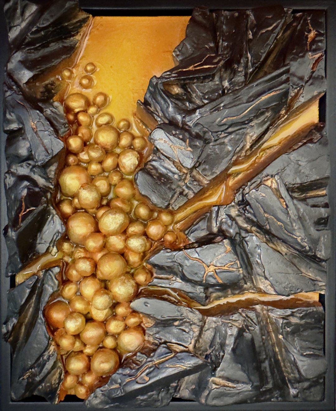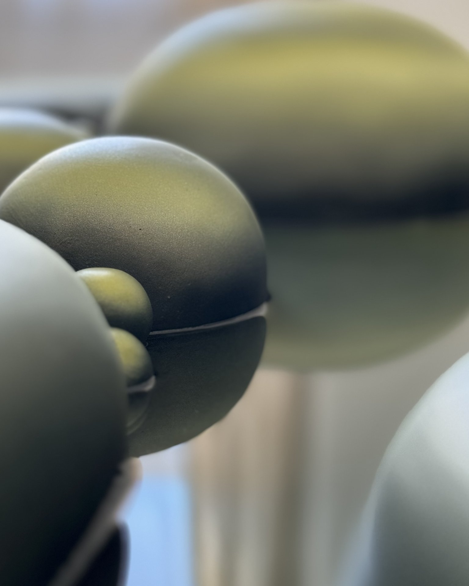 The artwork has an organic, fluid quality with soft, rounded forms that seem to emerge and merge together. It’s reflecting both the smooth sculptural flow and the clustered, bubble-like formations that evoke natural processes of change and growth.