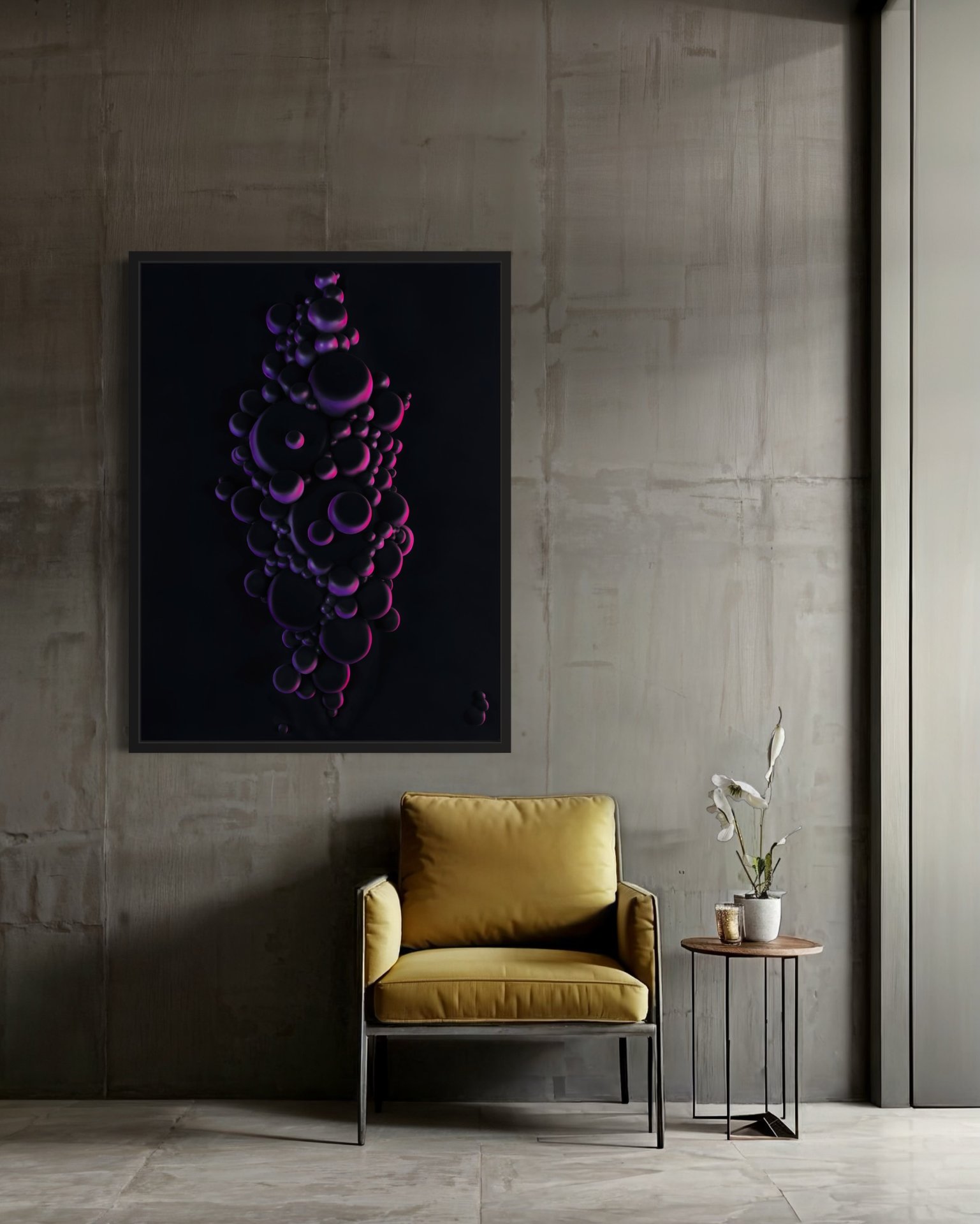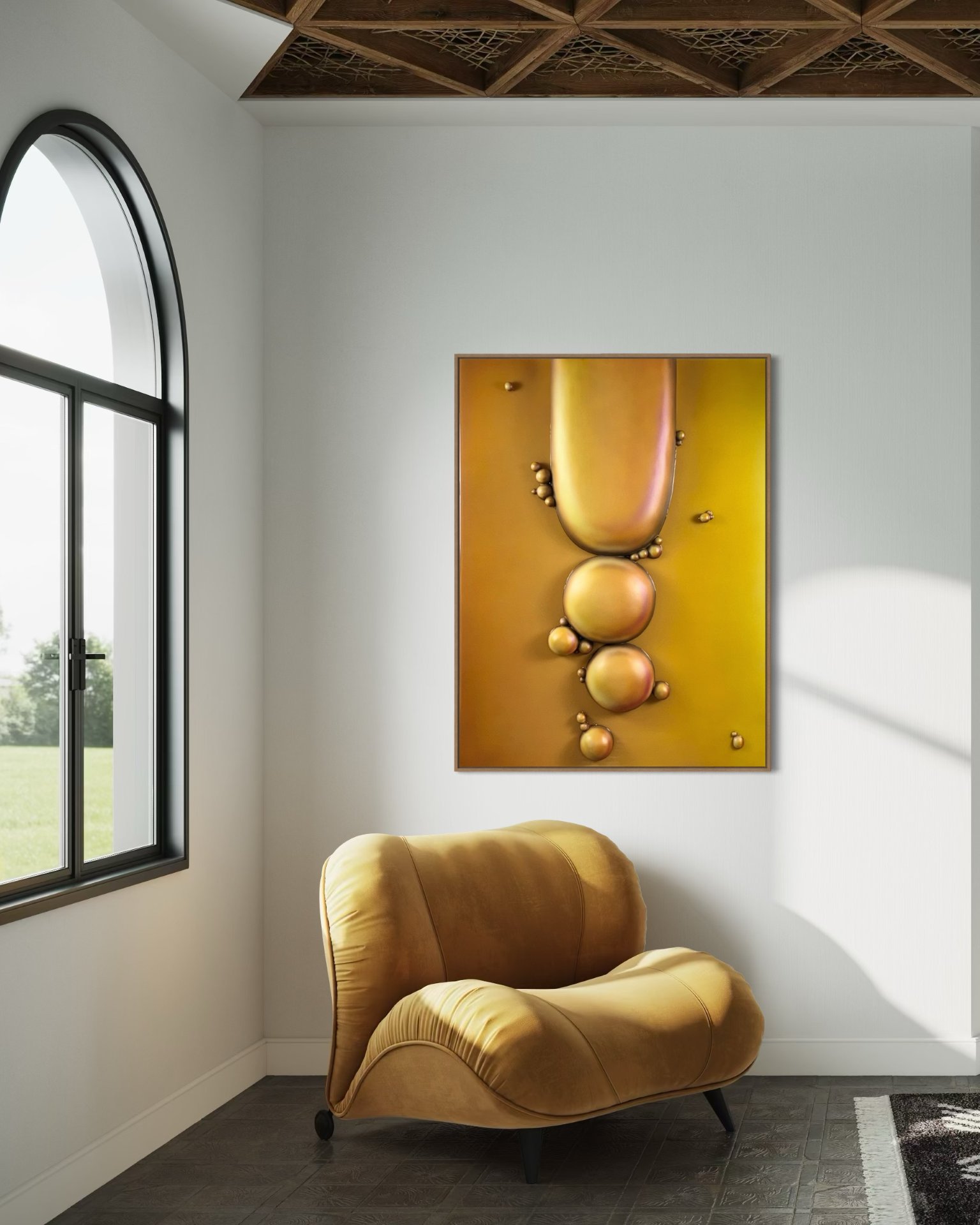 It captures the tension between submersion and dehydration, creating a paradox that makes the artwork even more thought-provoking. The monochromatic orange tones enhance the feeling of suffocation and unquenched desire, almost as if the bubbles are illusions of relief in an environment that offers none.