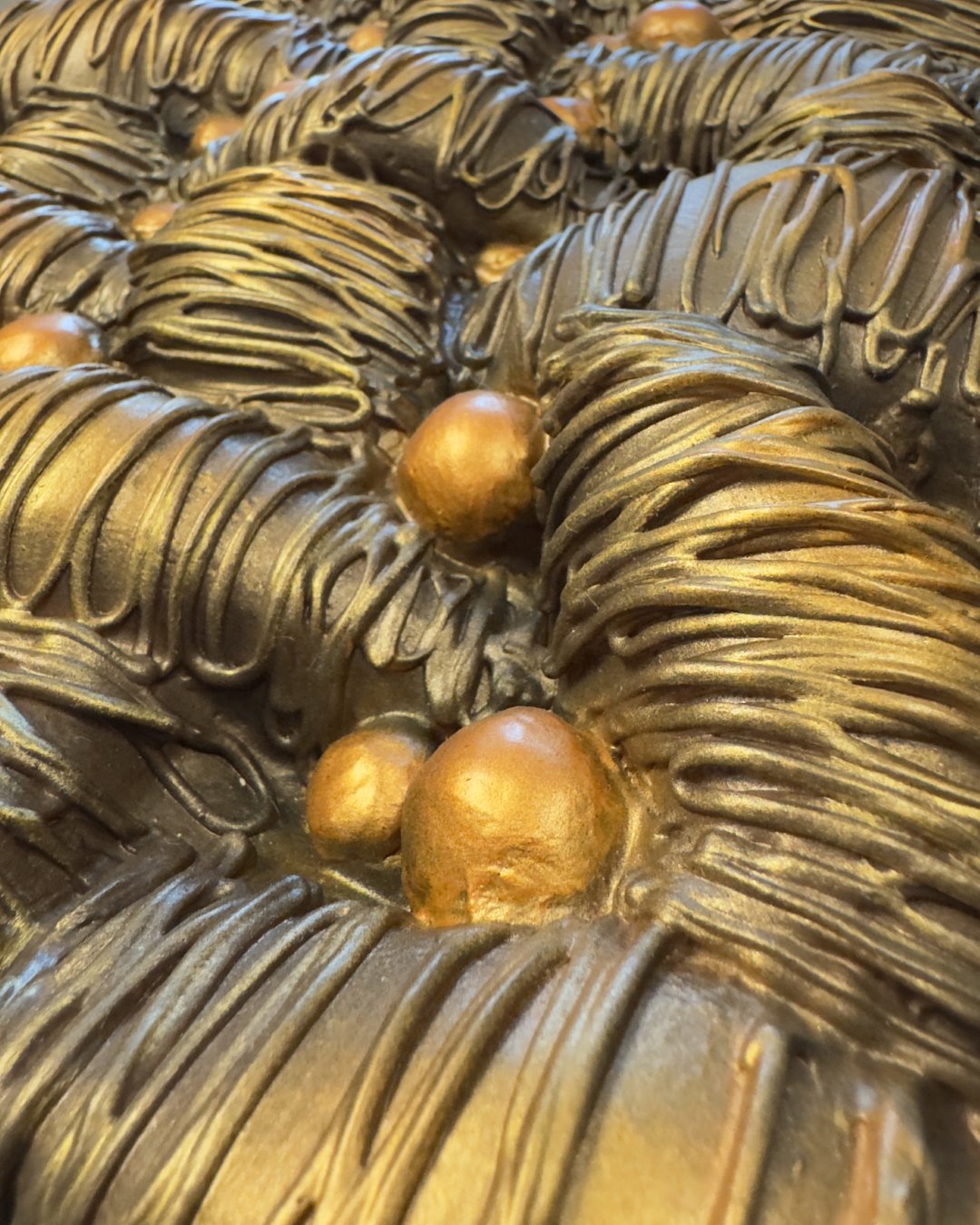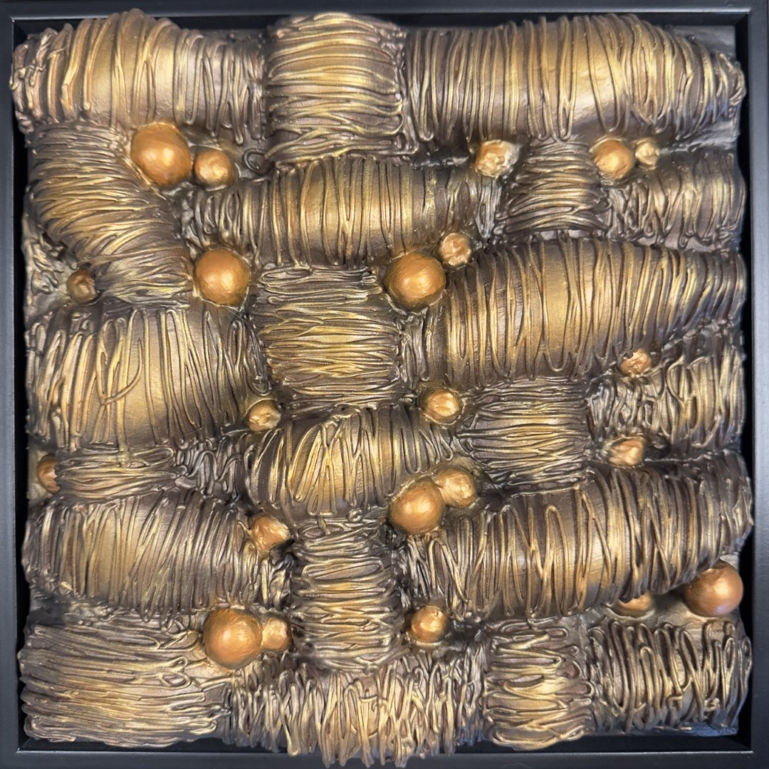 This artwork reflects the luxurious textures and golden hues while celebrating the multifaceted brilliance of the person it’s gifted to. It suggests a rich, interconnected masterpiece—just like their diverse talents and extravagant personality.